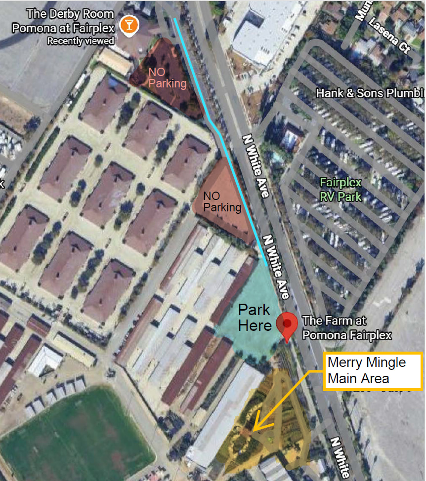 Access to The Farm’s Parking is through Gate 12, drive past The Derby Room parallel to White Ave. Continue to drive past The Deby Room's parking lot and the next parking lot after it. You will then arrive at a dirt lot, this is the parking for The Farm.